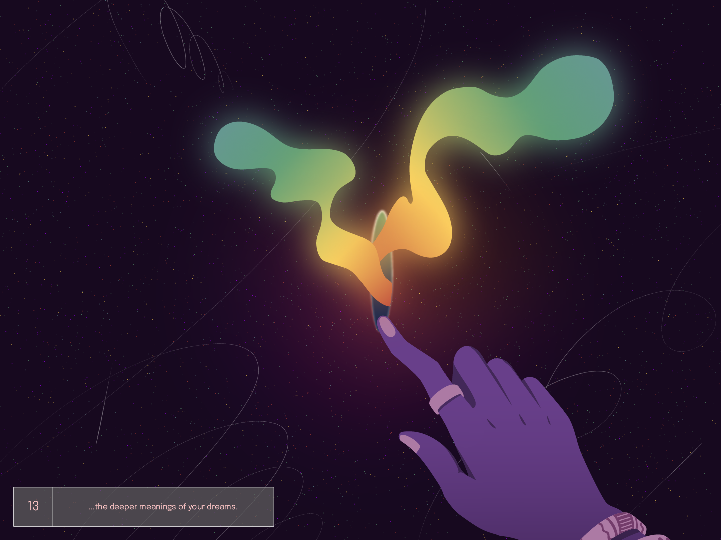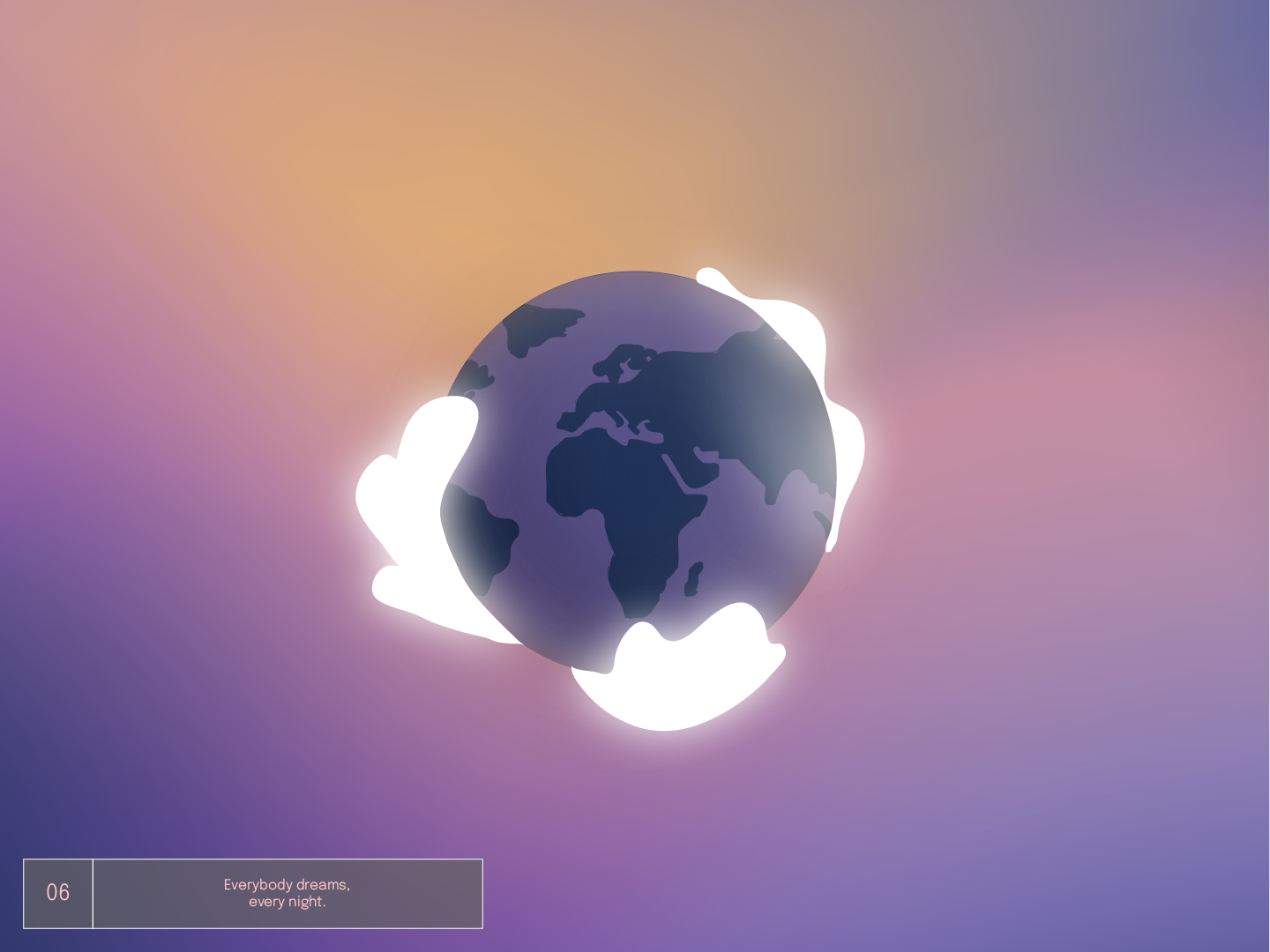 The assignment was to design an immersive experience in the explainer video format. The main goal: to educate website visitors about the power of dreams and introduce the app that helps decipher their meanings.